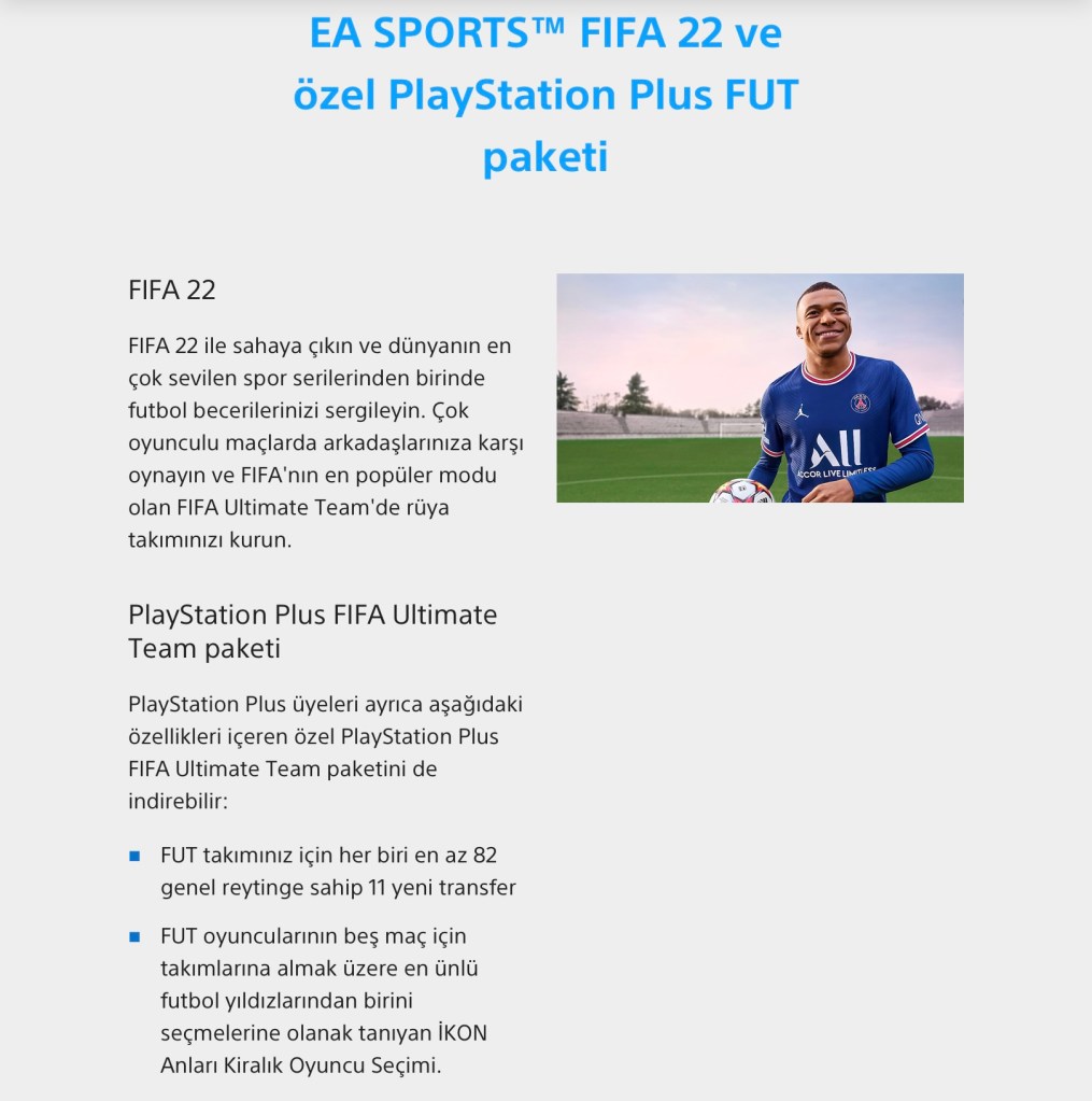 EA SPORTS™ FIFA 22 ve özel PlayStation Plus FUT paketi